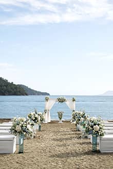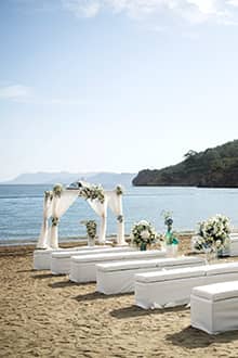 Çeşme, mit ihren schönen Stränden, dem kristallklaren Wasser und den Möglichkeiten zum Segeln und Windsurfen, ist ein Traumort für Hochzeiten in kleinem Rahmen und Flitterwochen. Die einzigartigen Hotels mit Gärten in Alaçatı sind Zeugen bezaubernder Romanzen.